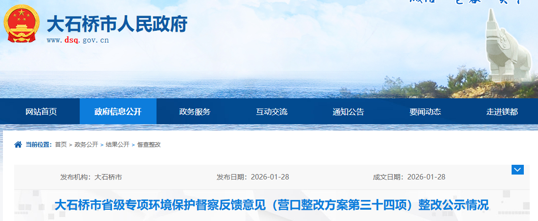 大石橋市環(huán)境保護督察整改領(lǐng)導(dǎo)小組辦公室