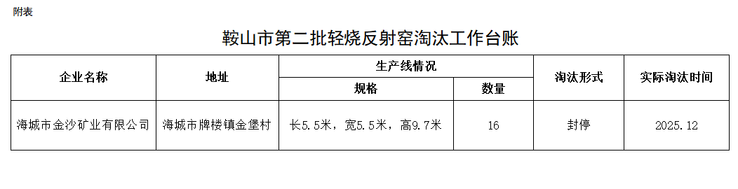 附件:鞍山市第二批輕燒反射窯淘汰工作臺(tái)賬