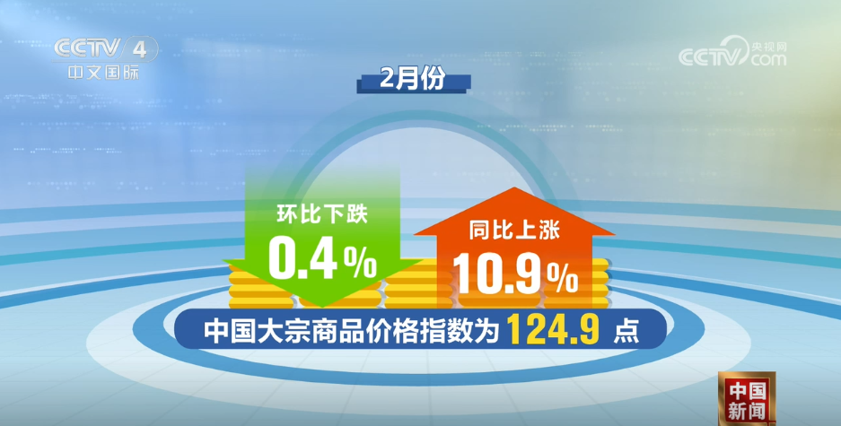央視網(wǎng)消息:中國(guó)物流與采購(gòu)聯(lián)合會(huì)公布2月份中國(guó)大宗商品價(jià)格指數(shù)。受春節(jié)假期影響,雖環(huán)比略有回落,但同比仍保持10.9%的漲幅,表明大宗商品市場(chǎng)運(yùn)行總體平穩(wěn),市場(chǎng)預(yù)期向好的基本趨勢(shì)和內(nèi)生動(dòng)力依然穩(wěn)固。隨著節(jié)后各行業(yè)全面復(fù)工復(fù)產(chǎn)以及投資和消費(fèi)需求釋放,市場(chǎng)有望逐步回暖,企穩(wěn)回升。