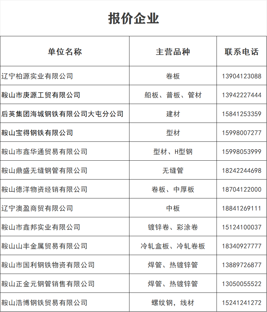4月24日 鞍山地區(qū)鋼材價格表